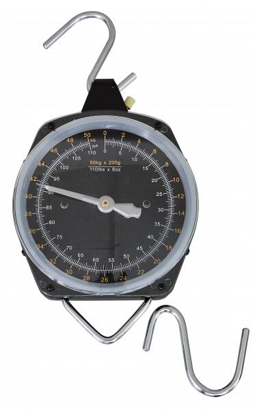 Egyszerű mechanikus mérleg 50 kg süllyig mérésére. Védőtokban kapható és kampóval, mérlegelő felakasztásához.